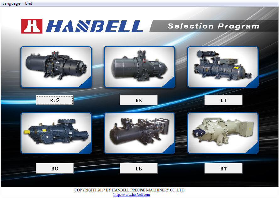RC2 半密閉螺旋式 RC2-AV 變頻式螺旋式 RC2-ExP 防爆型半密螺旋式 RE 高效型螺旋冷媒壓縮機 RG 開放螺旋式 LB 低溫專用螺旋式 LT 單機雙段螺旋式